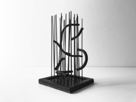 PIPELINE (2019) cardboard, metal, rubber. 7 × 7 × 14 cm